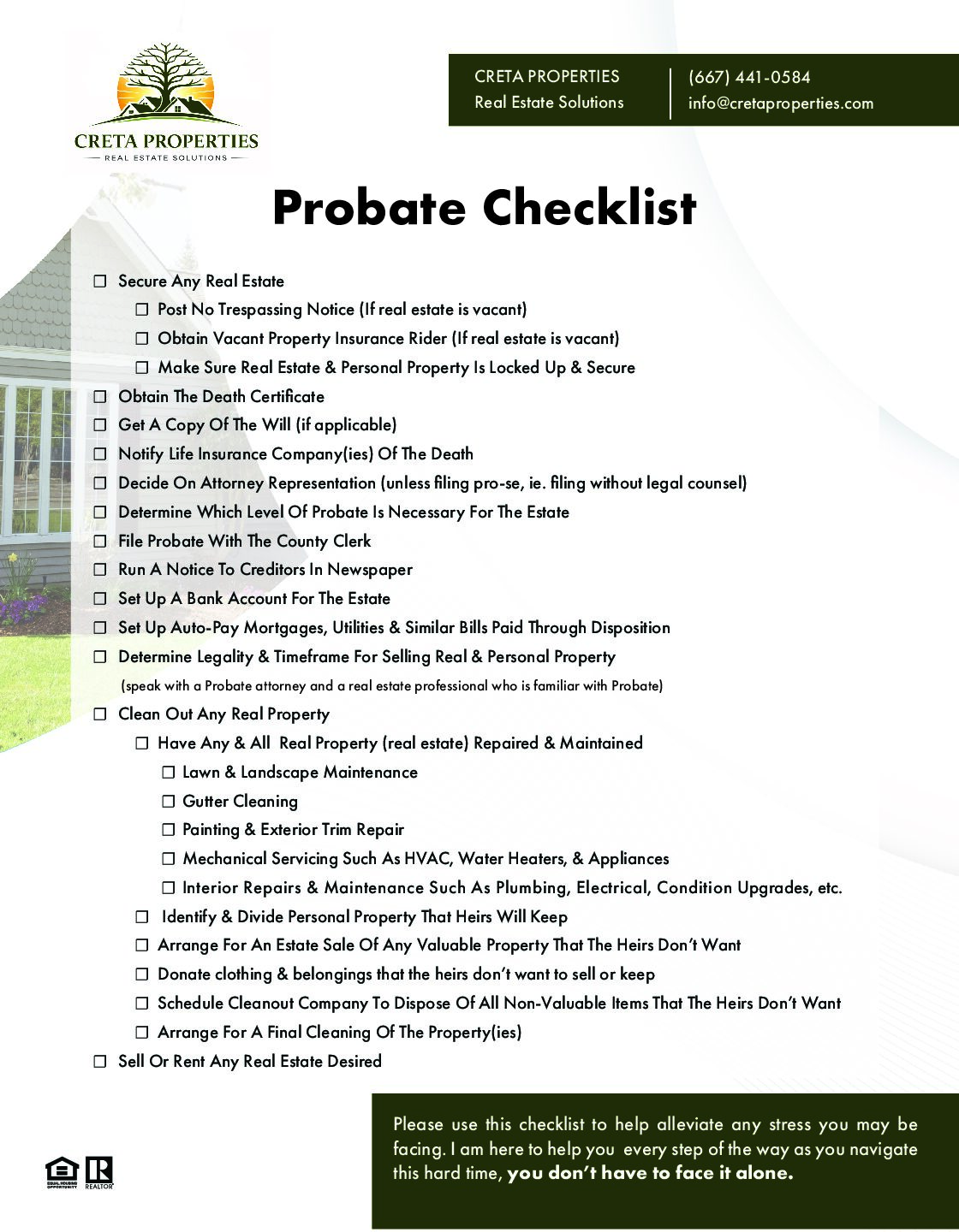 Download the checklist and keep it with your probate paperwork for easy reference.